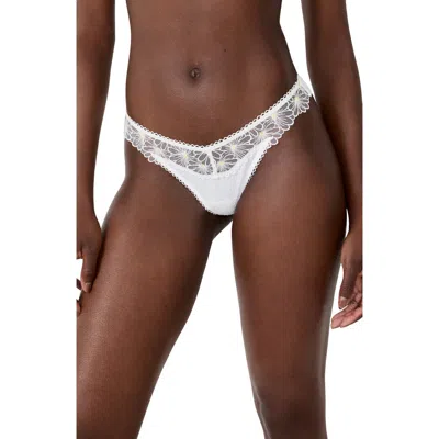 Daisy Embroidered Tanga Thong In White