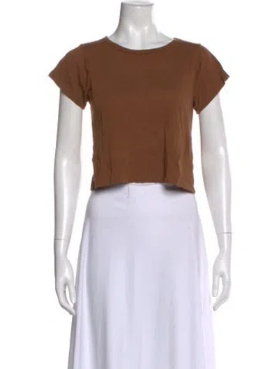 Pre-owned Crew Neck Short Sleeve Crop Top In Brown