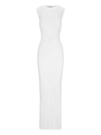 Tiaki Side-slit Ribbed Maxi Dress In White