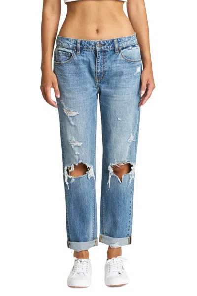 Ghosted Mid Rise Girlfriend Jeans In Medium Denim