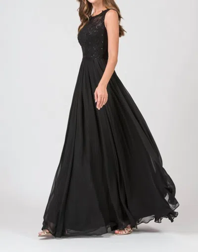 Lauren Lace Chiffon Prom Dress In Black