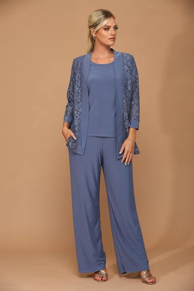 3483 Long Formal Floral Jacket Pant Suit In Blue