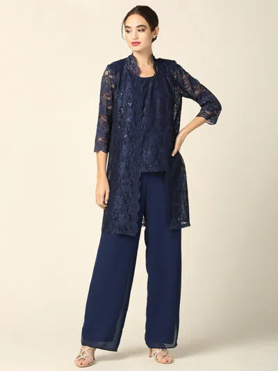 Mother Of The Bride Long Jacket Pant Suit In Blue