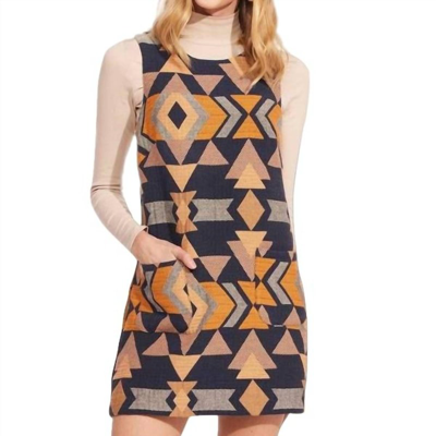 Nico Drawstring Roll Sleeve Top In Peach Geo In Multi