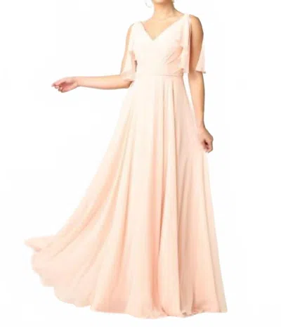 Ferrara Chiffon Split Sleeve Prom Evening Dress In Blush In Gold