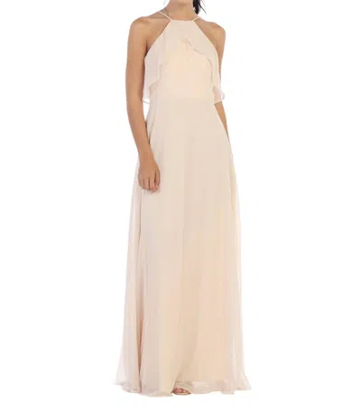 Sicily V-neck Front And Back Grecian Chiffon Gown Dress In Champagne In White