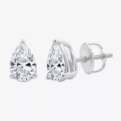(h-i / Si2-i1) 1 Ct. T.w. Lab Grown White Diamond 10k White Gold Pear Stud Earrings In Silver