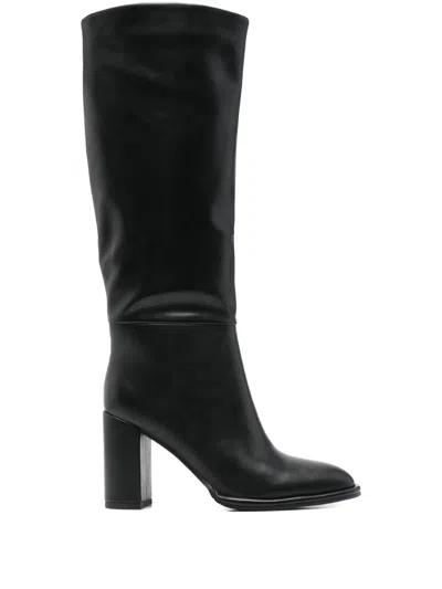 Almond-toe Zip Leather Boots In Black