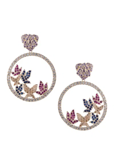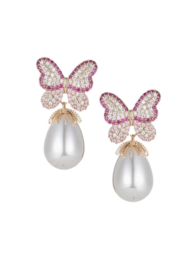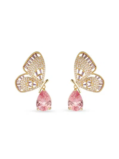 Women's Luxe Pink Monarch 18k Goldplated & Cubic Zirconia Butterfly Drop Earrings