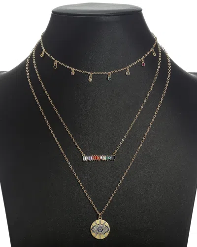 Luxe Collection Silver Cz 3pc Dangle Drop Necklace Set In Gold