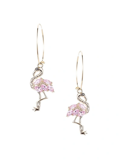 Dancing Flamingo Cz Crystal Earring In Pink