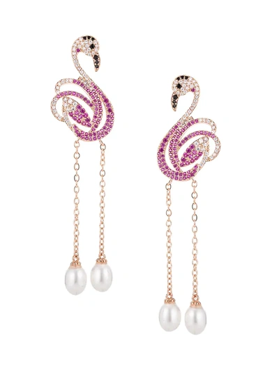 Women's Luxe Crystal & Simulated Pearl Pink Flamingo Drop Earrings