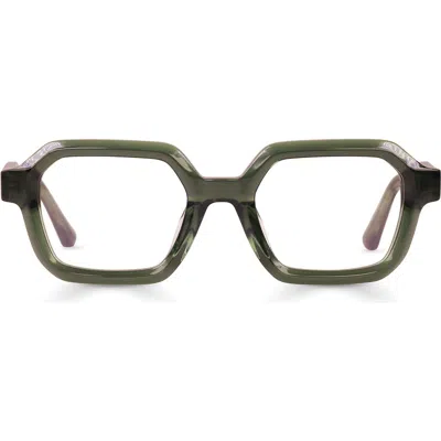 Eye-con 46mm Square Reading Glasses In Olive Green Crystal