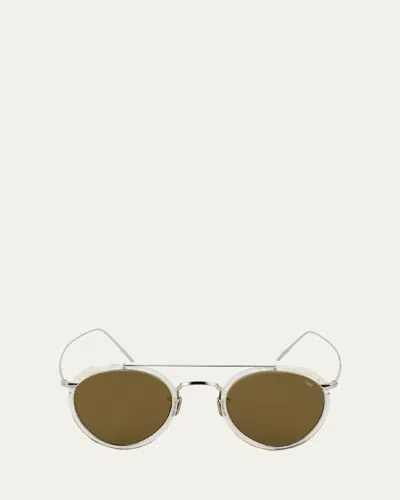 Men's 717e Round Acetate-wrapped Metal Sunglasses In Black Pattern