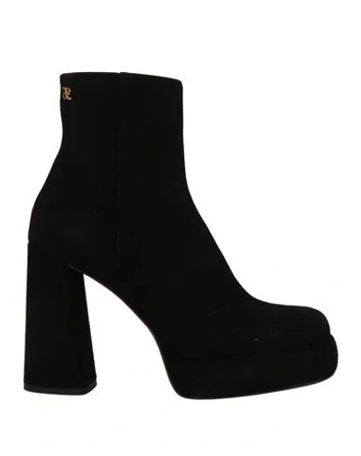 F65 Woman Ankle Boots Black Size 9 Leather, Textile Fibers In Multi