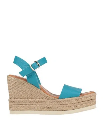 Woman Espadrilles Azure Size 8 Soft Leather In Blue