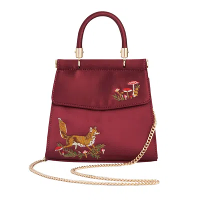 Women's Fox & Mushroom Embroidered Satin Tote - Burgundy In Red