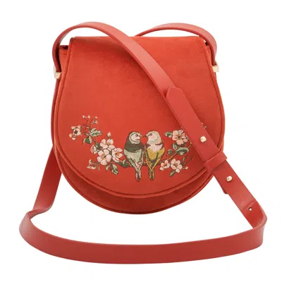 Women's Fox & Mushroom Embroidered Saddle Bag In Red