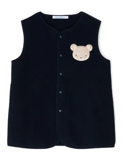 Babies' Embroidered Teddy-bear Detail Vest In Blue