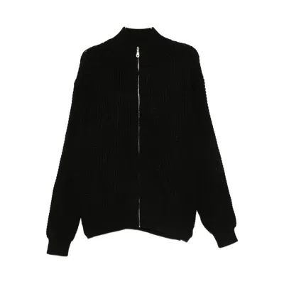 Waffle-knit Zip-up Cardigan In Black