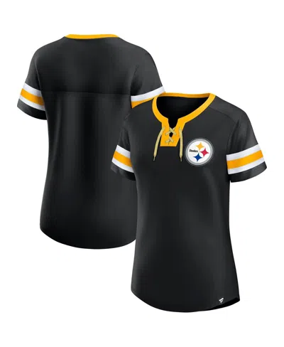 Women's Black Boston Bruins Prime Time Lace-up Long Sleeve T-shirt In Black,gold