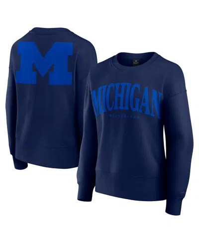 Women's Navy Michigan Wolverines Supersoft Flow Fleece Pullover Sweatshirt In Blue