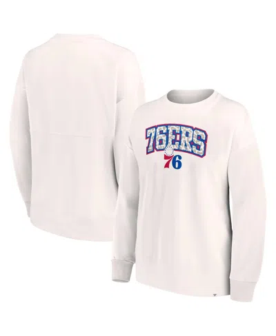 Women's White Philadelphia 76ers Tonal Leopard Pullover Sweatshirt