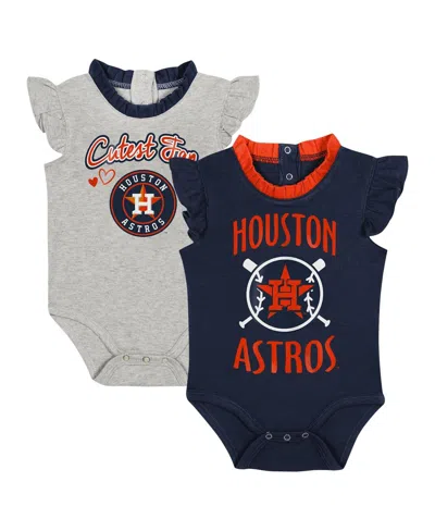Baby Boys And Girls Navy, Gray Houston Astros Two-pack Fan Bodysuit Set In Navy,gray