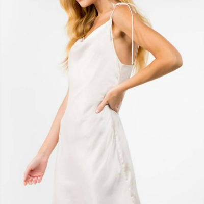 Satin Cowl Neck Shoulder Tie Mini Dress In Ivory In White