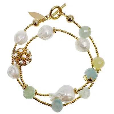 Women's Blue / White Baroque Pearl With Aquamarine Double Layers Bracelet In Multi