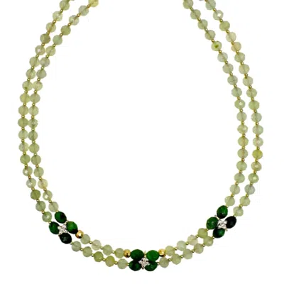 Women's Green Prehnite With Zircon Stones Double Layers Collar Necklace