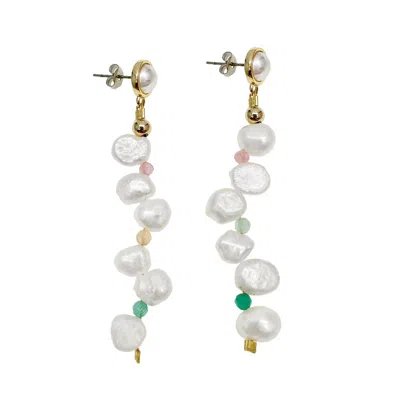 Women's White Flower Petal Freshwater Pearls With Colorful Stones Earrings