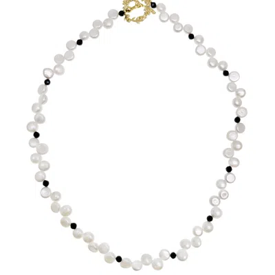 Women's Black / White Timeless Black Obsidian And White Freshwater Drops Adjustable Ring In Multi