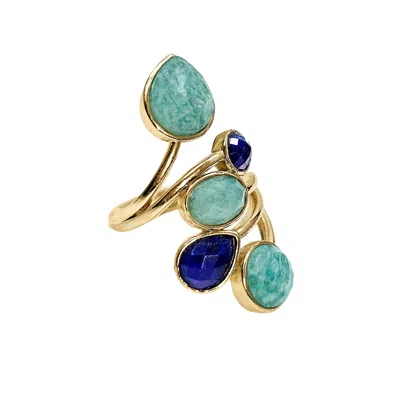 Women's Amazonite And Lapis Cocktail Adjustable Ring In Blue