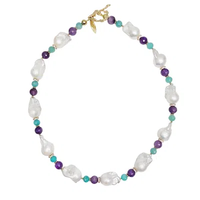 Women's Elegant Baroque Pearls With Amethyst & Amazonite Necklace In Multi