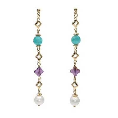 Women's Green Multi-gemstone & Pearl Drop Shoulder Earrings