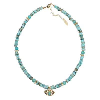 Women's Green Shell With Turkish Evil Eye Pendant Necklace