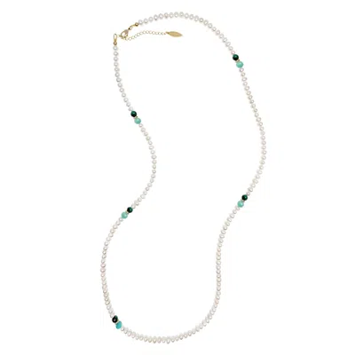 Women's Versatile Freshwater Pearls With Green Gemstone Long Necklace