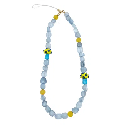 Blue Irregular Aquamarine With Yellow Mushroom Phone Strap
