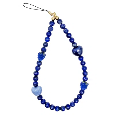 Blue Natural Lapis Lazuli With Raspberry And Hearts Phone Strap