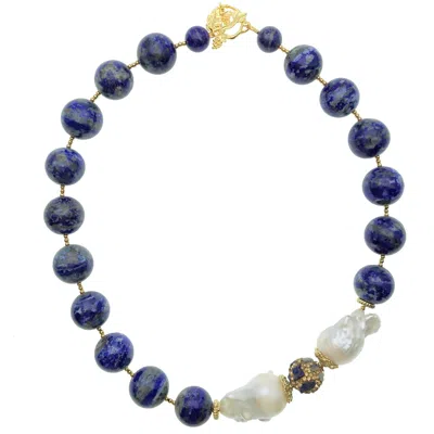 Women's Blue / White Natural Round Lapis With Baroque Necklace