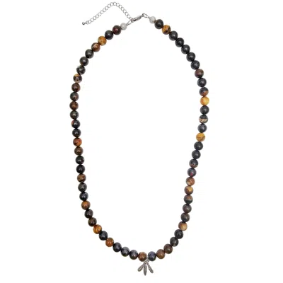 Brown Tiger's Iron Stone With Freshwater Pearls Men's Necklace