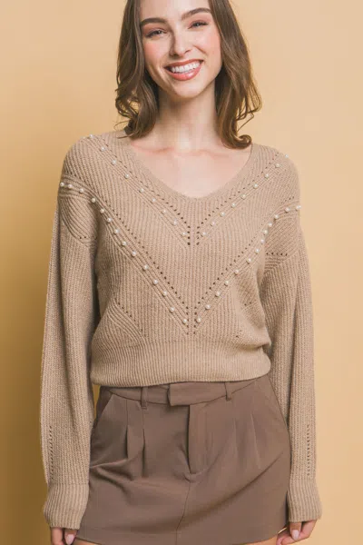 Pearl Details Sweater In Gray
