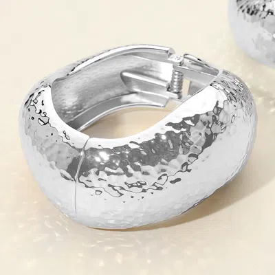 Chunky Hammered Metal Wavy Hinged Bangle Bracelet Rhodium In Multi