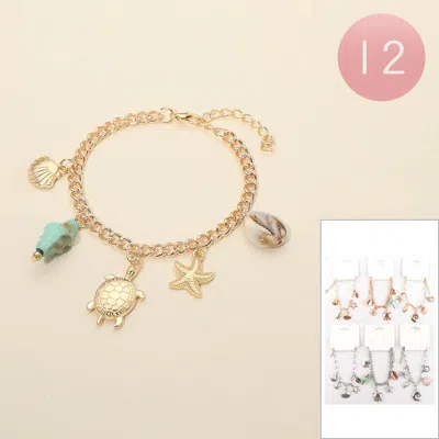 12pcs - Shell Turtle Starfish Charm Station Chain Bracelets In Burgundy