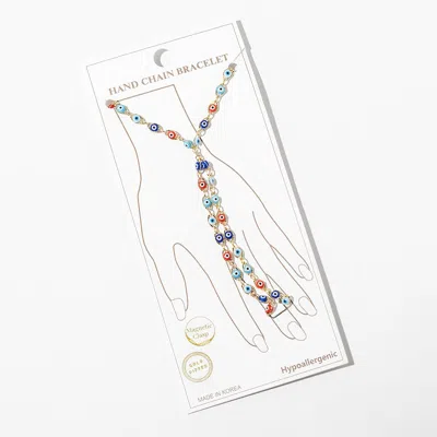 Gold Dipped Evil Eye Charm Link Hand Chain Magnetic Bracelet In Multi