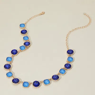 Round Square Stone Bezel Cluster Link Necklace In Blue