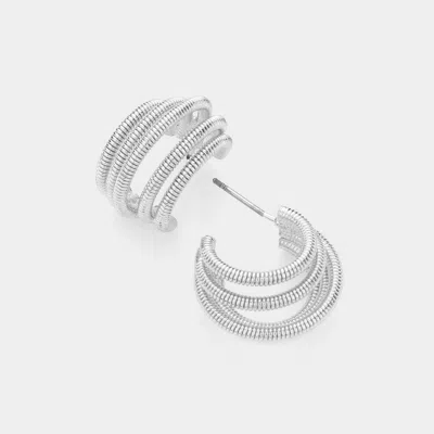 Textured Metal Pin Catch Hoop Earrings - Rhodium In Metallic