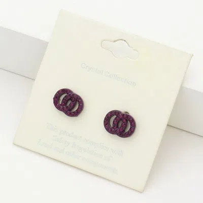 Rhinestone Embellished Double Open Circle Link Stud Earrings - Amethyst In Purple
