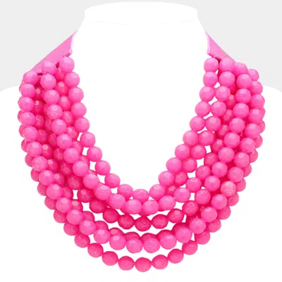 Chunky Acrylic Ball Beaded Multi Layered Faux Leather Magnetic Necklace In Pink
